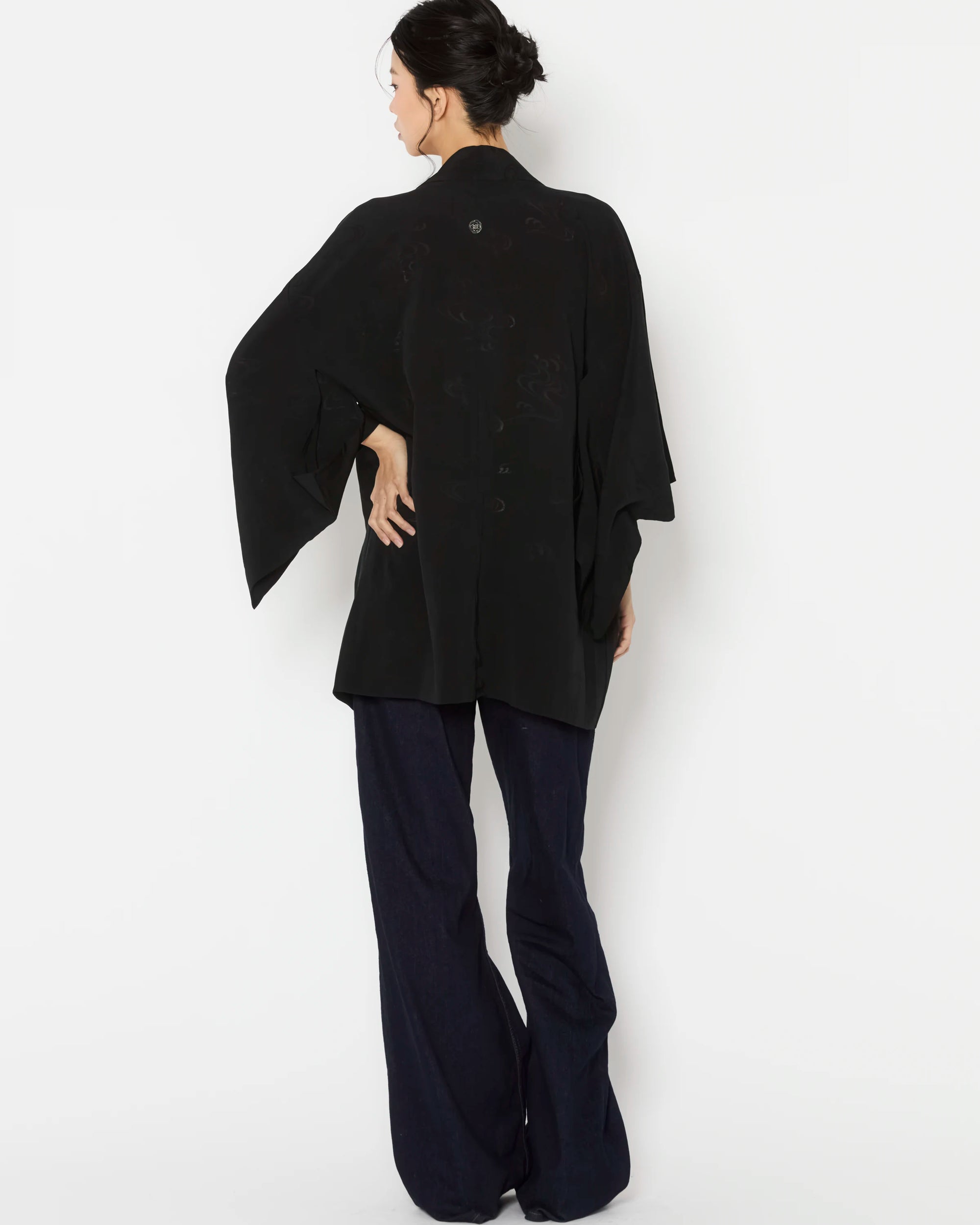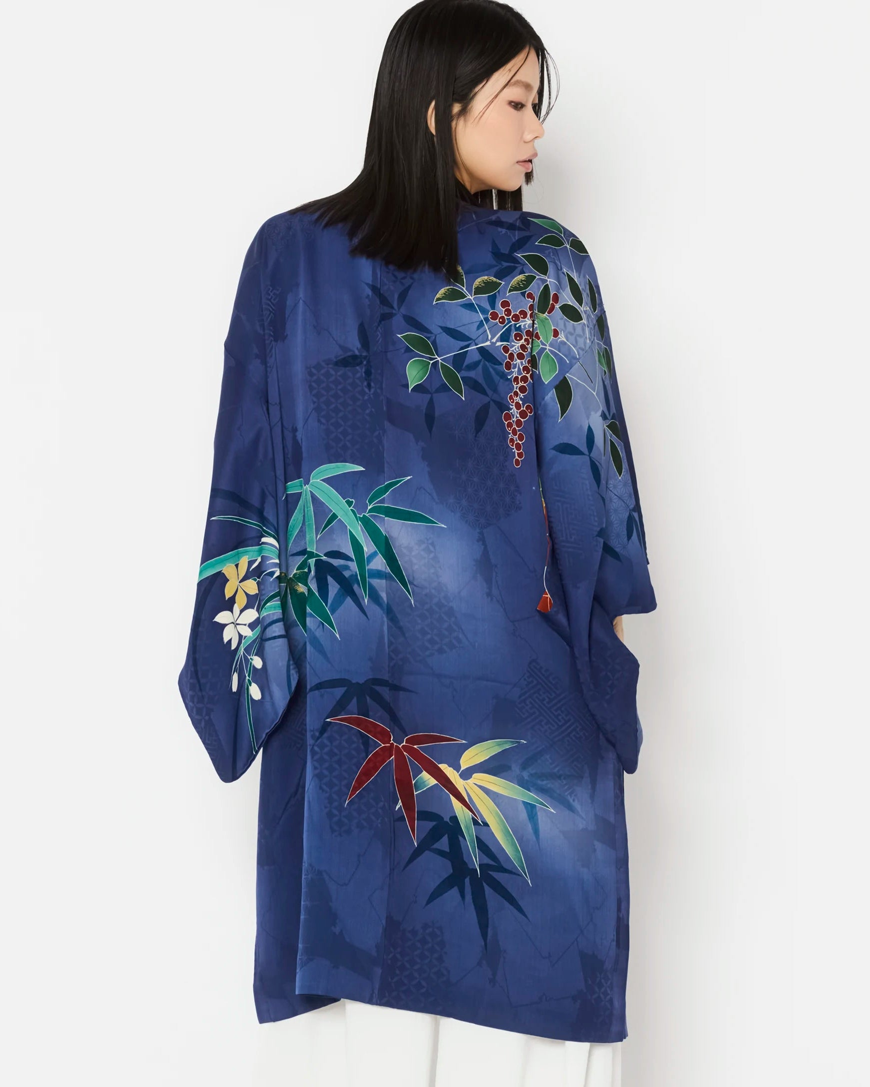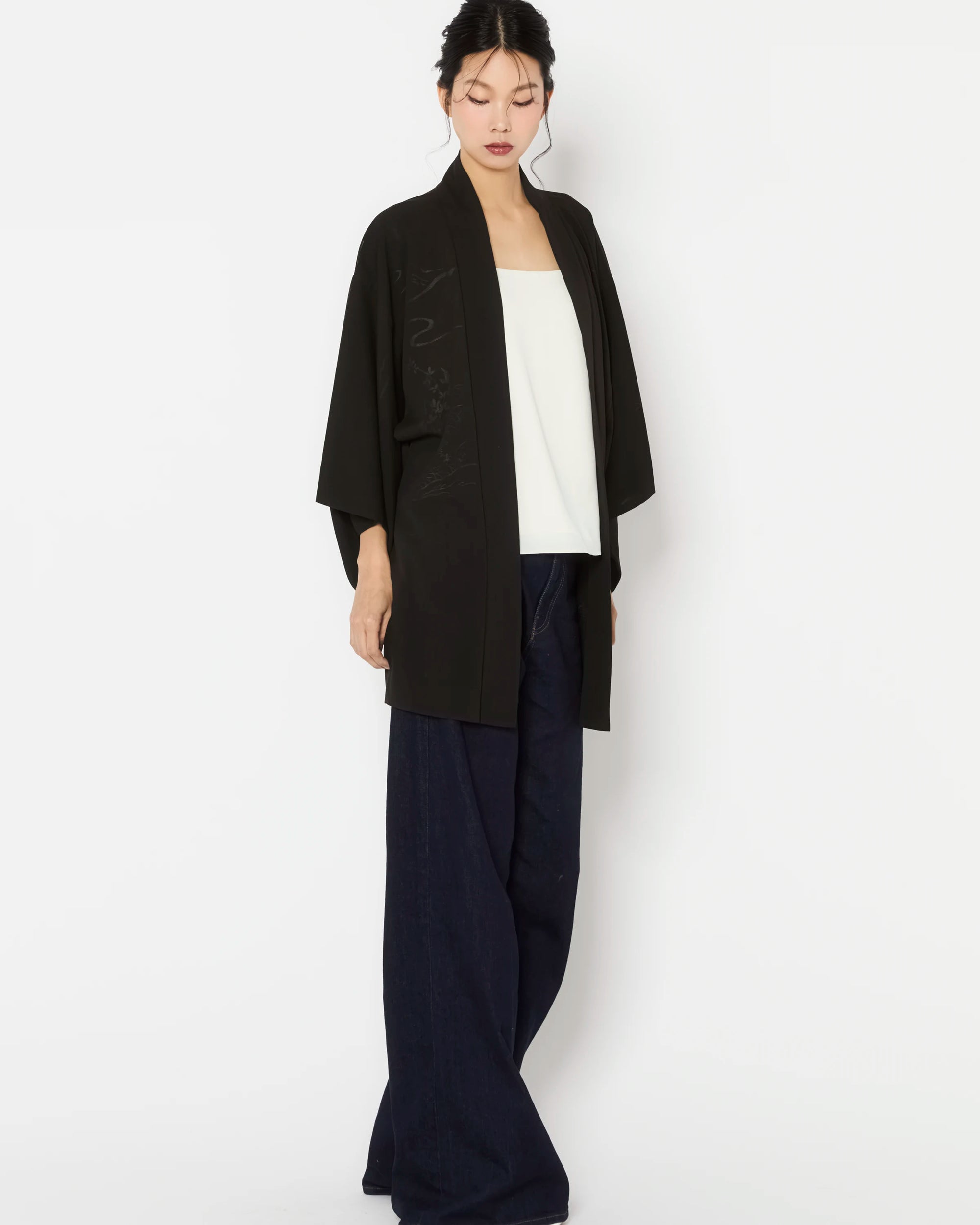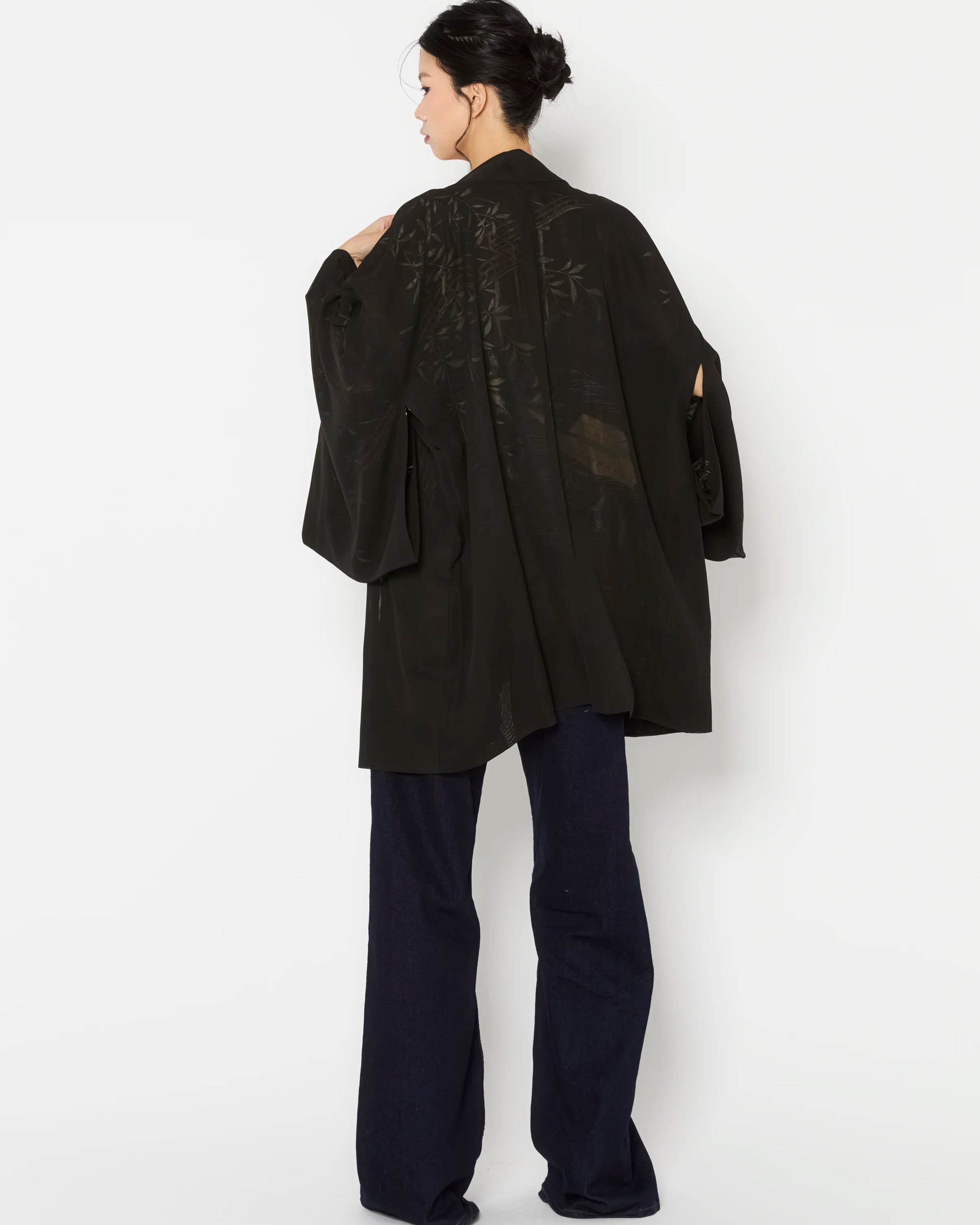 Carefully curated for exceptional quality and intricate detailing, these Haori are authentic outerwear pieces of Japanese Kimono heritage. Each piece is hand-made and one-of-a-kind, offering a rare glimpse into the artistry of traditional Japanese garments.