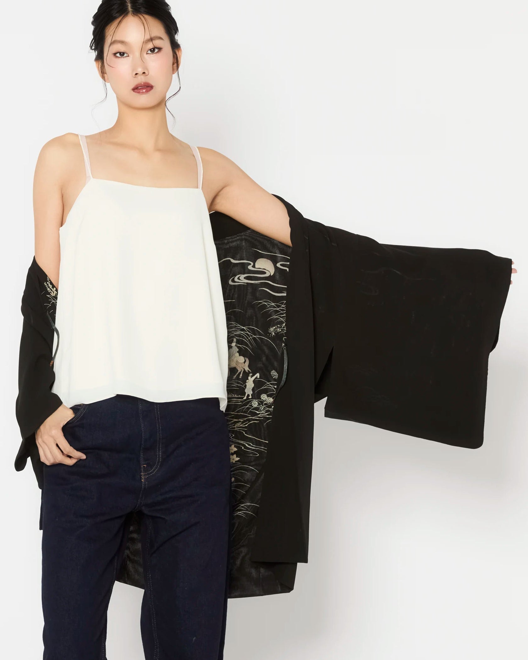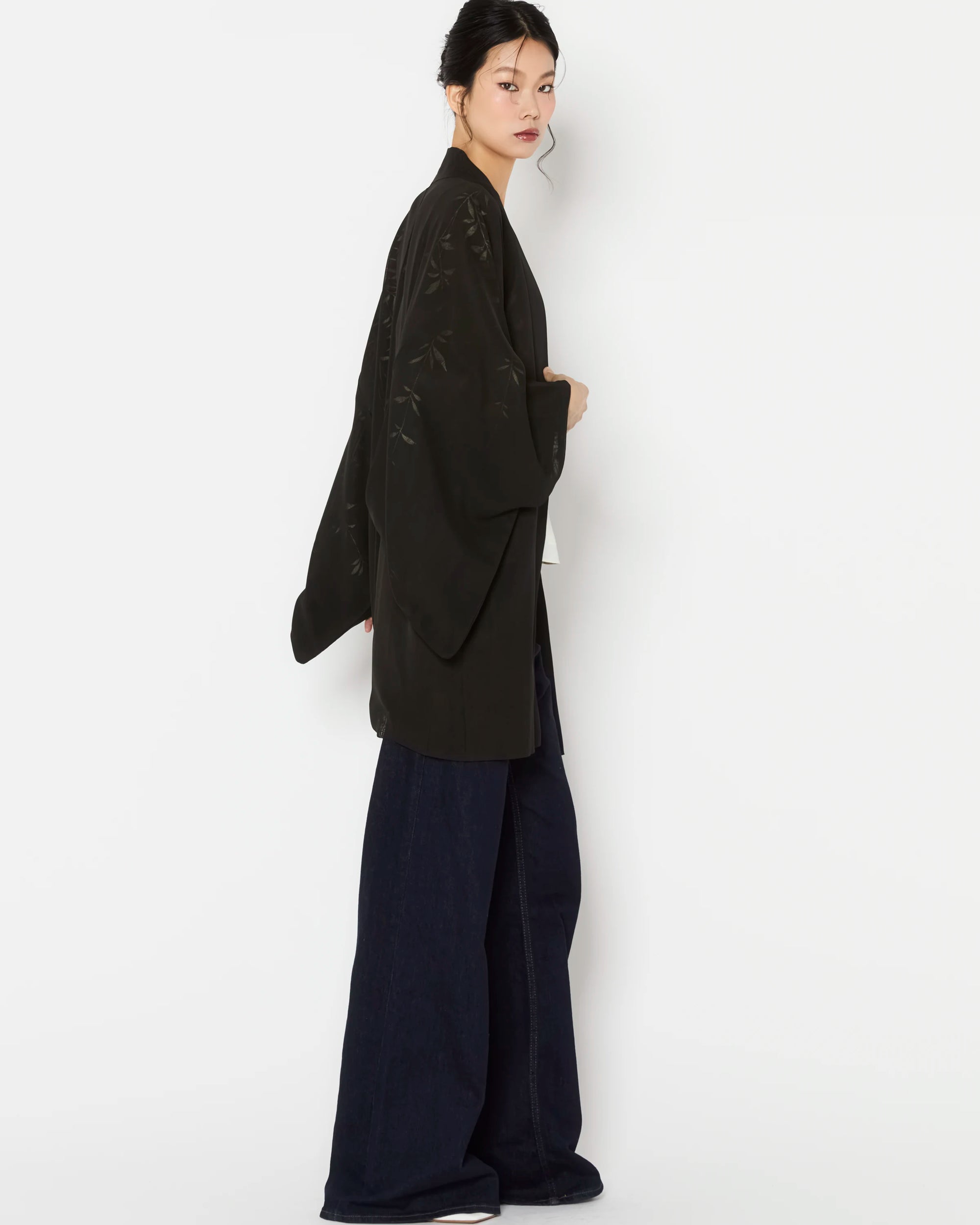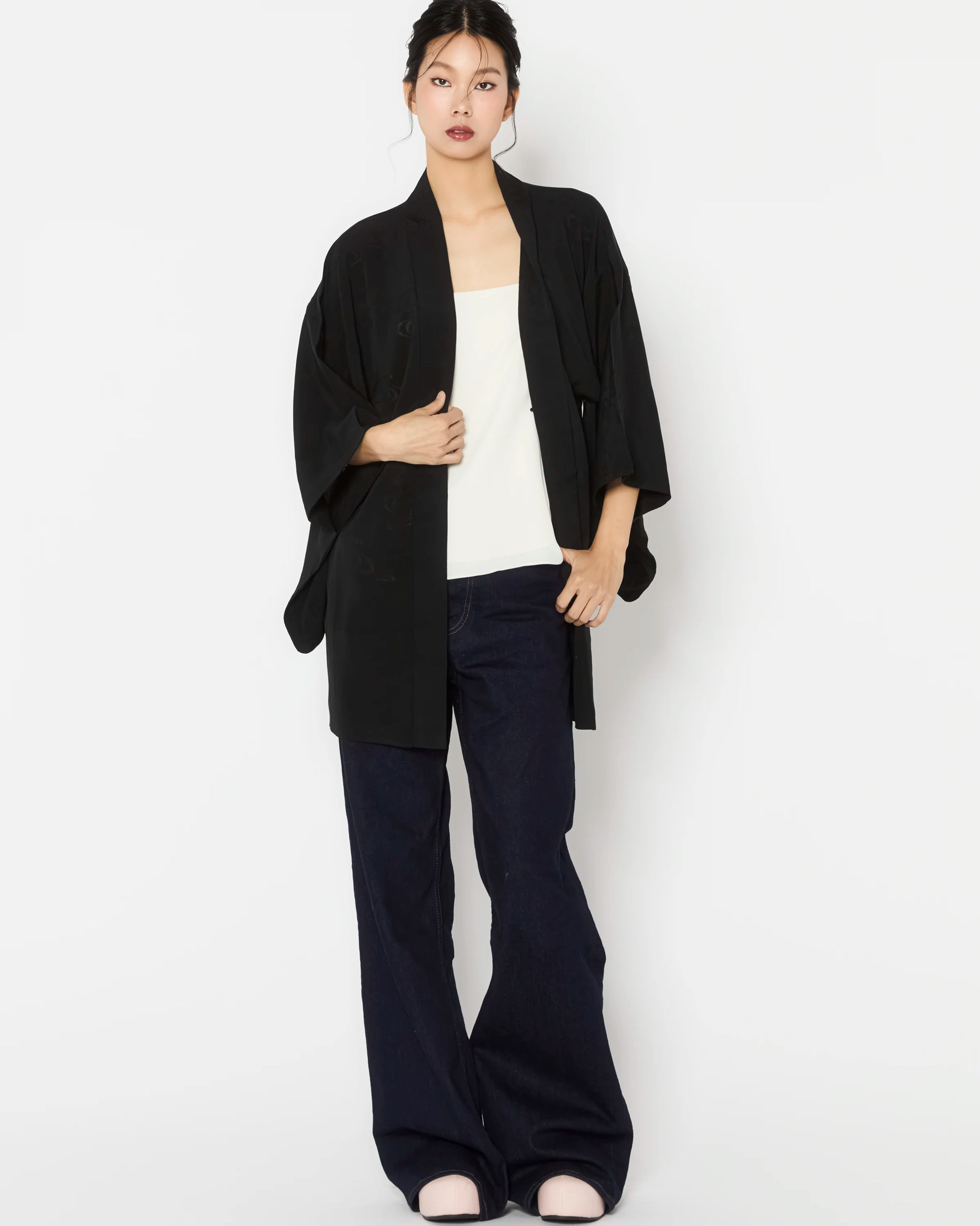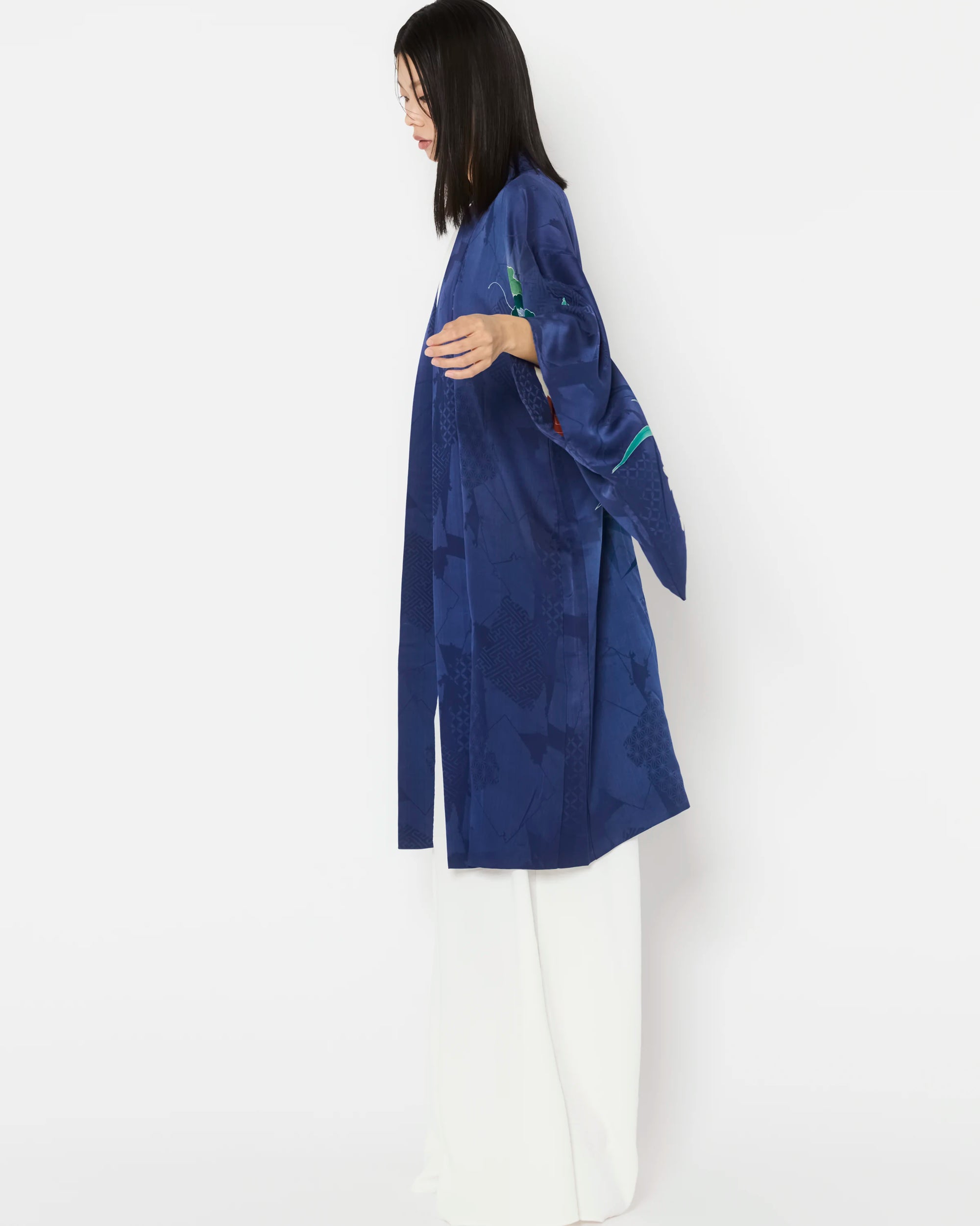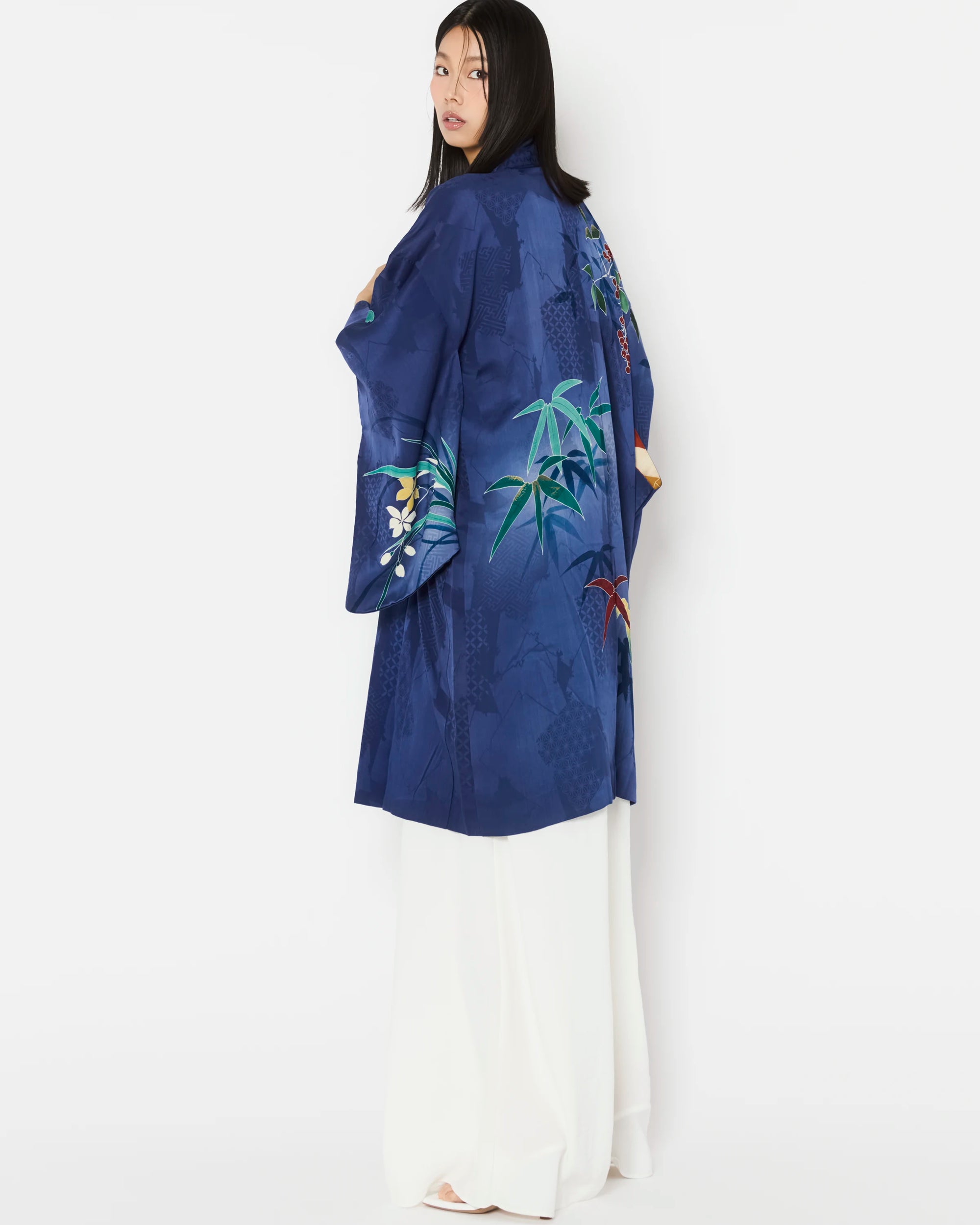 Carefully curated for exceptional quality and intricate detailing, these Haori are authentic outerwear pieces of Japanese Kimono heritage. Each piece is hand-made and one-of-a-kind, offering a rare glimpse into the artistry of traditional Japanese garments.