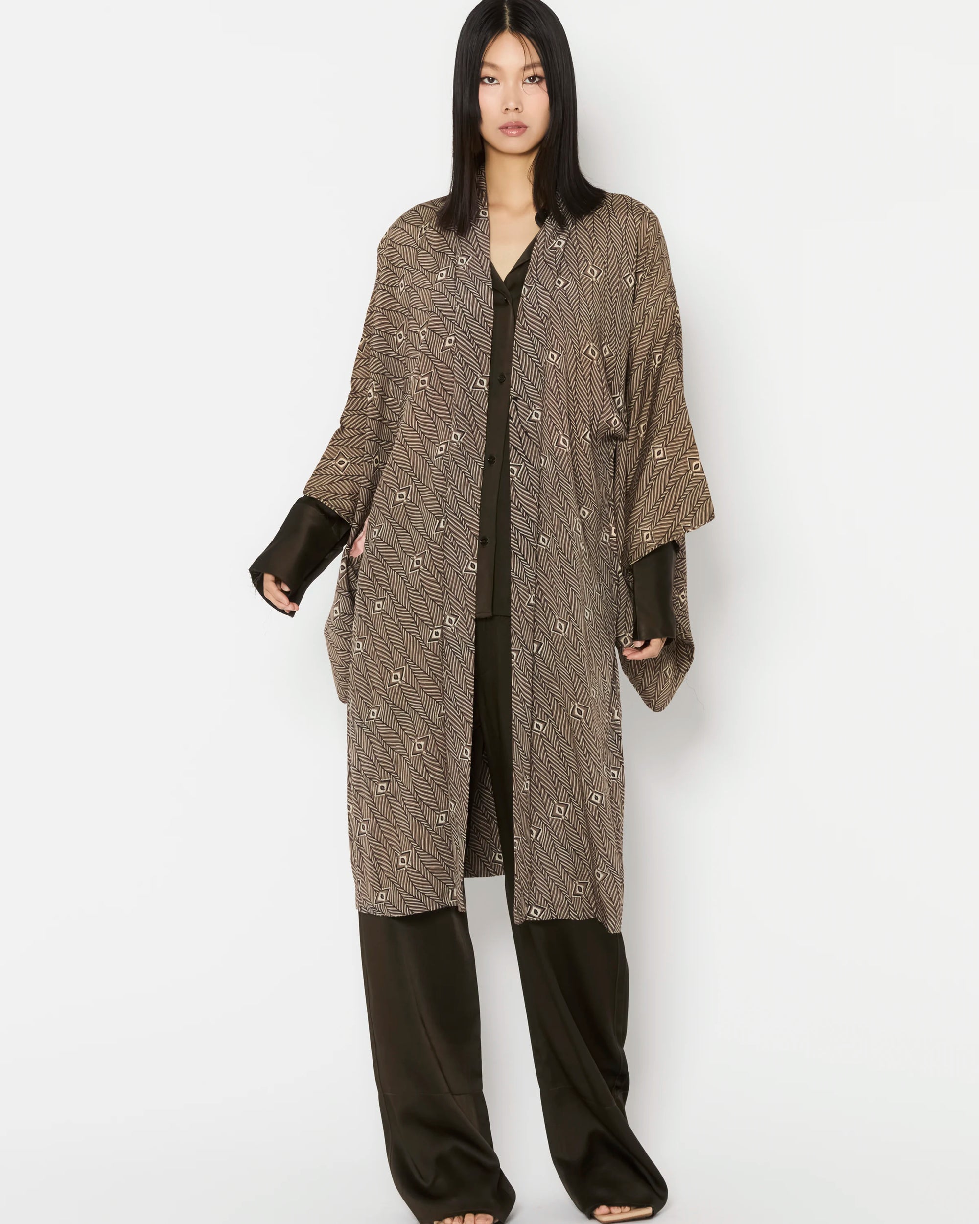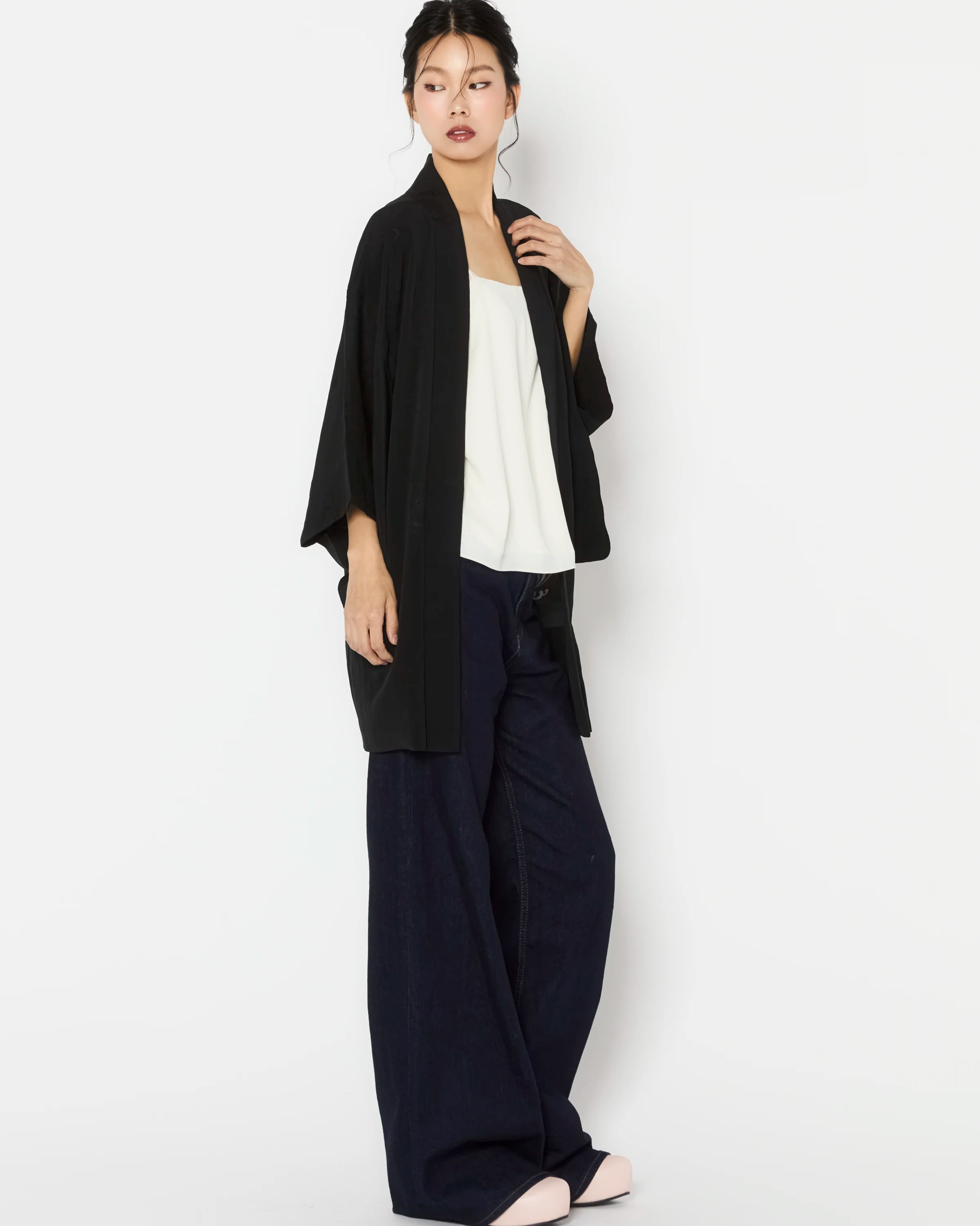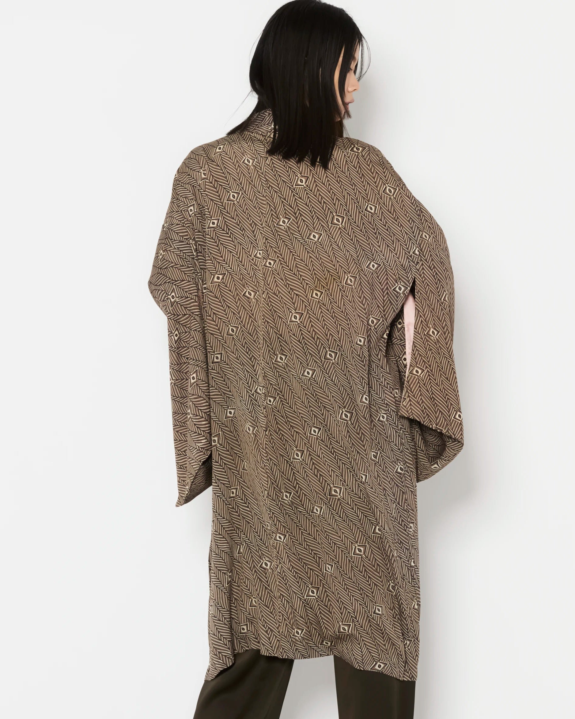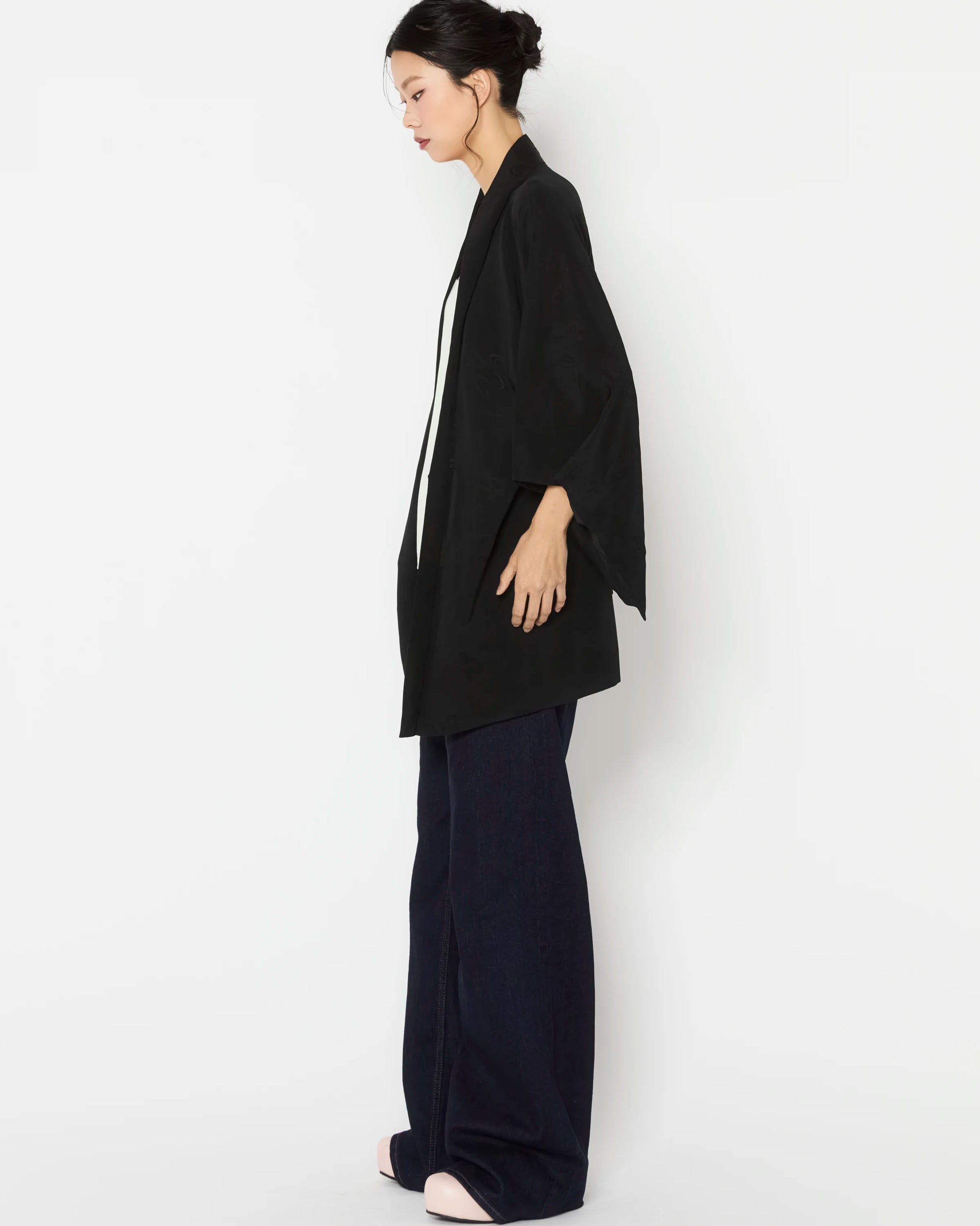 Carefully curated for exceptional quality and intricate detailing, these Haori are authentic outerwear pieces of Japanese Kimono heritage. Each piece is hand-made and one-of-a-kind, offering a rare glimpse into the artistry of traditional Japanese garments.